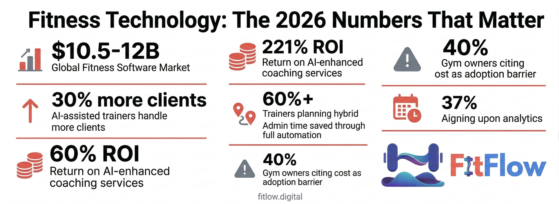 Fitness technology for professionals has shifted from a nice-to-have experiment to a core business requirement. The global fitness software market has reached an estimated $10.5-12 billion and is projected to grow substantially through 2033, while the gym management software segment alone is valued at over $1 billion and climbing. For trainers and gym owners, technology adoption has become the dividing line between businesses that scale and those that stall.
