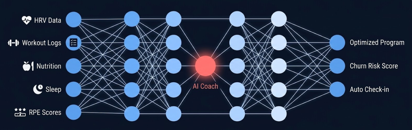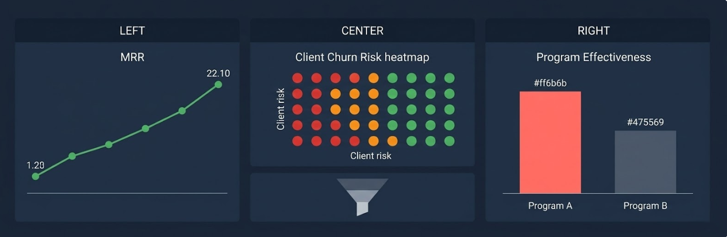 Deep Analytics Engine: Aggregates data across entire client rosters to show programming effectiveness (e.g., "Clients improved squat strength 15% on Program A vs. 5% on Program B")